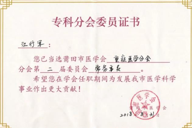 熱烈祝賀盛興醫(yī)院重癥(ICU)科主任   江行軍 當(dāng)選莆田市醫(yī)學(xué)會(huì)   重癥醫(yī)學(xué)分……